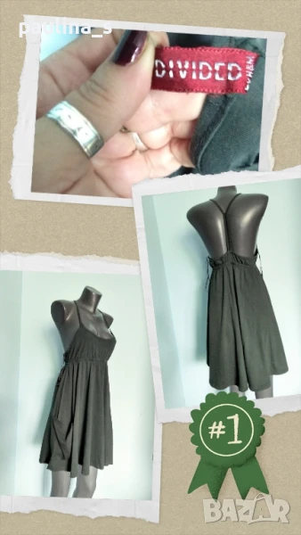 1️⃣ Колаж / L / 2XL - "H&M" Devided. Цената е крайна 19,99лв. Зелена плажна рокля с джобове и гол гръб, купувана е в Турция, но не е носена. Материята е памук и ликра - трико, еластична и покрива няколко размера, хипоалергична. има избелващ ефект, нова е, без дефекти, скъсано или други подобни.