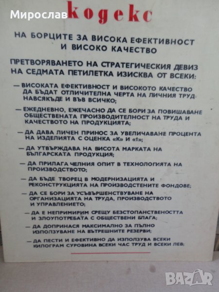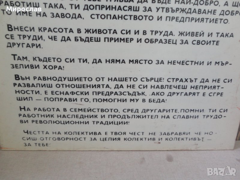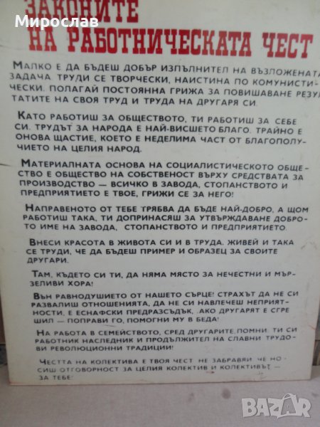 СТАРА ДВУСТРАННА ТАБЕЛА ЗАКОНИТЕ НА РАБОТНИЧЕСКАТА ЧЕСТ ЛОЗУНГ ПРОПАГАНДА СОЦ. → Обява 36684853