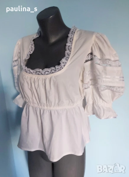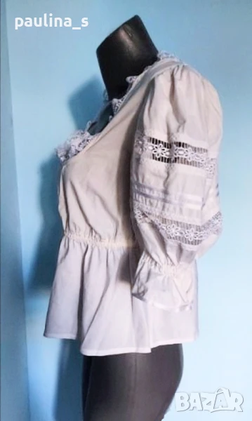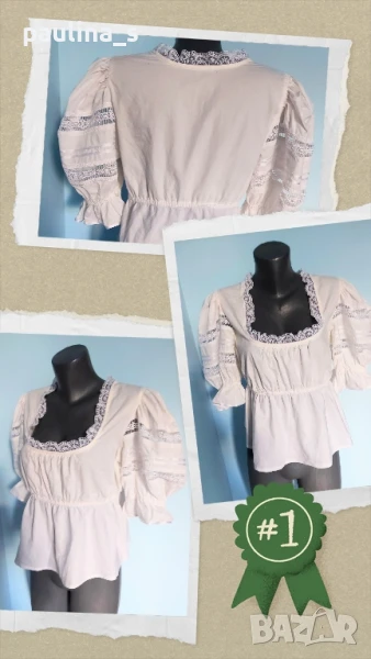 2️⃣. Колаж / Памучна туника с буфон ръкави. Цената е крайна 29,99лв / 15 евро. L / 2XL - Богато декорирана блуза тип туника, от памук с буфон ръкави. Деколтето е дълбоко, щедро декорирано, ръкавите също. Под бюста платът е по-ефирен и веревно скроен. Дрехата е идеална и много красива, като нова.
