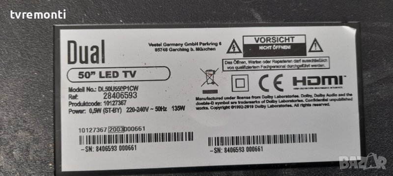 Захранваща платка , 17IPS172 ,170818R4 for Dual DL50U550P1CW Борда е гарантирано работещ Демонтиран от телевизор Dual модел DL50U550P1CW със счупен дисплей VES500QNDP-2D-N42 тествана от нашия техник за повече инфо 0988312803