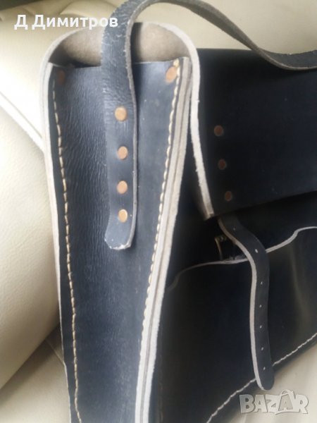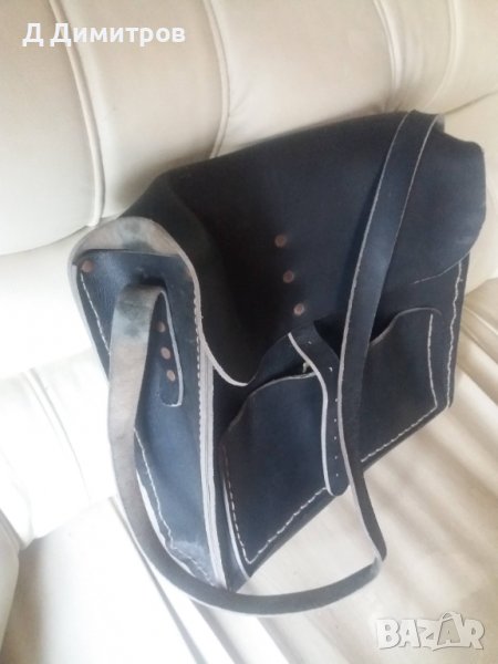 Стара винтидж кожена чанта от 60те години.Чантата е много масивна и здраво ушита от телешка кожа.Шита е от майстор сарач.Предполагам,че е направена да се закача за седлото на кон.