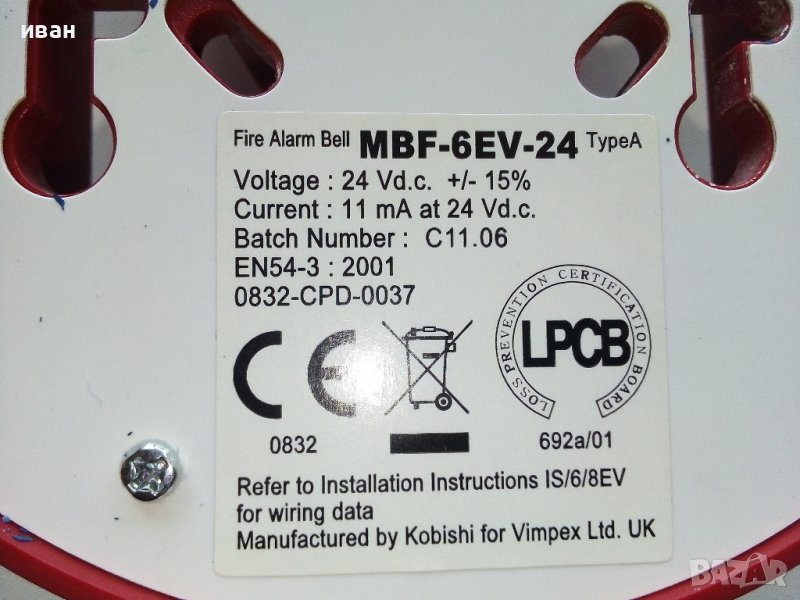 Пожарен Звънец - Hochiki - 24V Употребяван.