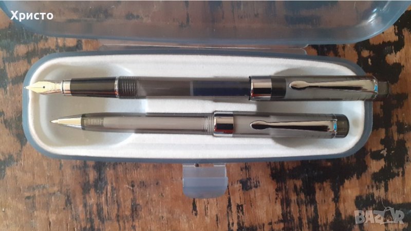Продавам писалка и химикалка комплект в подаръчна кутия. Нови, супер подарък, метал и прозрачна пластмаса, в пластмасова кутия, перо на писалката IRIDIUM POINT GERMANY