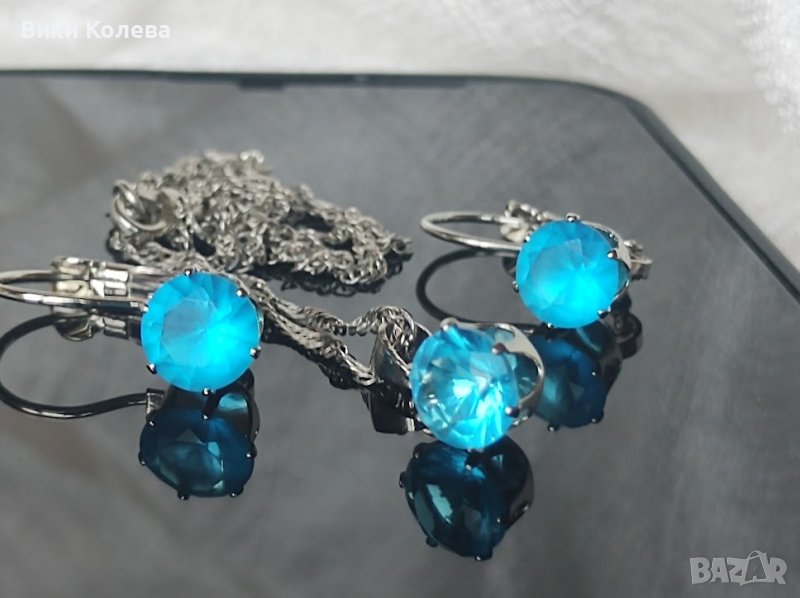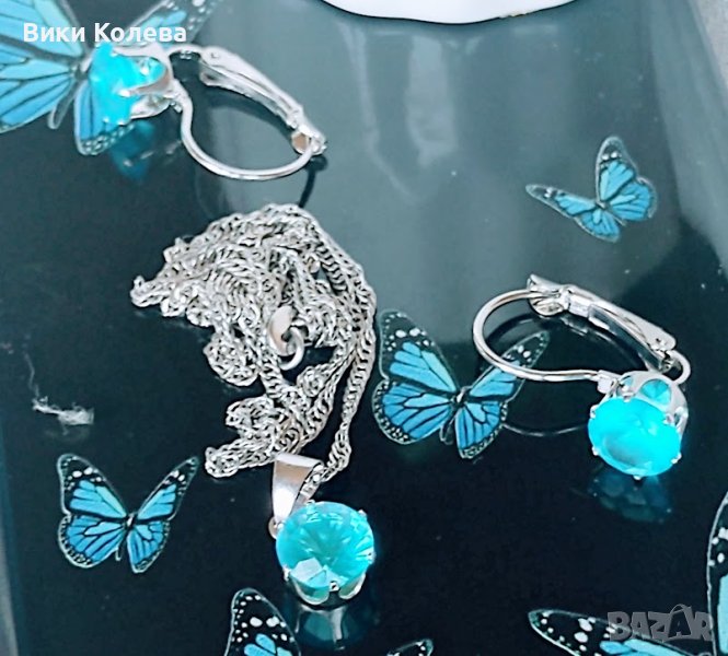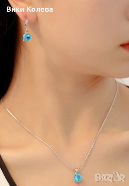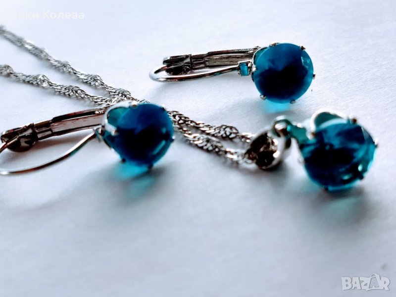 колие и обеци в небесно синьо.