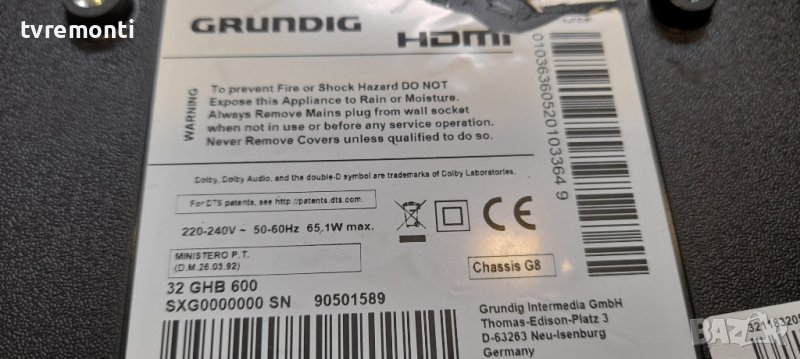 MAIN BOARD ZG8190R-1 for 32 GHB 6000 Madrid Smart TV - GRUNDIG Борда е гарантирано работещ Демонтиран от телевизор GRUNDIG модел 32 GHB 6000 със счупен дисплей BOEI320WX1H тествана от нашия техник