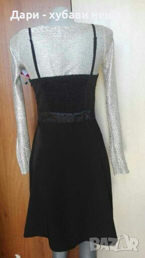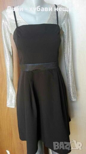 Черна рокля с акцент от сатен🍀❤S,M❤🍀арт.1017