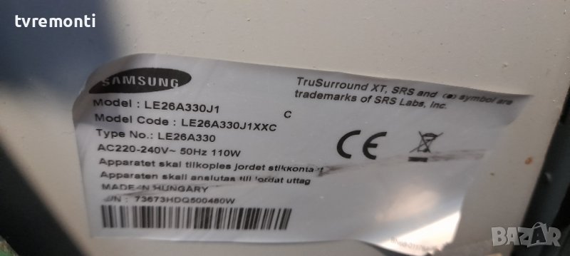 t con v260b1-c04 for SAMSUNG LE26A330J1 Борда е гарантирано работещ Демонтиран от телевизор SAMSUNG модел LE26A330J1 със счупен дисплей V260B1-C04 тествана от нашия техник