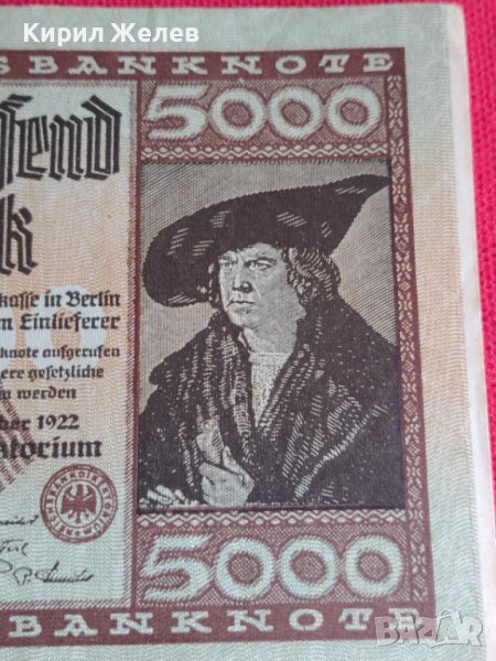 Райх банкнота 5000 марки 1922г. Уникат перфектно състояние за колекционери - 27434