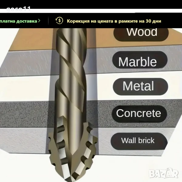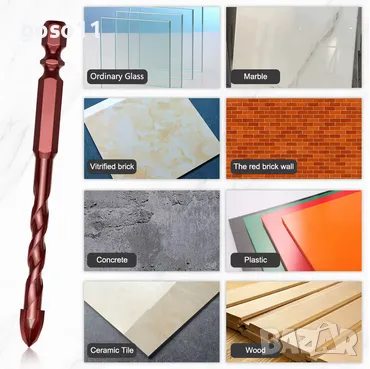 -- снимка 8, 9 : материал - волфрамова стомана с титаниево покритие ; употреба - върху , дърво, пластмаса, керамика, бетон, стъкло, гранит и др. ; комплект - 4бр. ; налични - 1 к-т ; цена - 9,30€./к-т