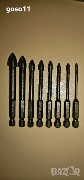 -- снимка 4, 5, : материал - карбидна стомана ; употреба - върху керамика, бетон, стъкло, дърво, пластмаса, тухла, гранитогрес ; комплект - 8бр. ; налични - 2 комплекта ; цена - 14,40€./к-т