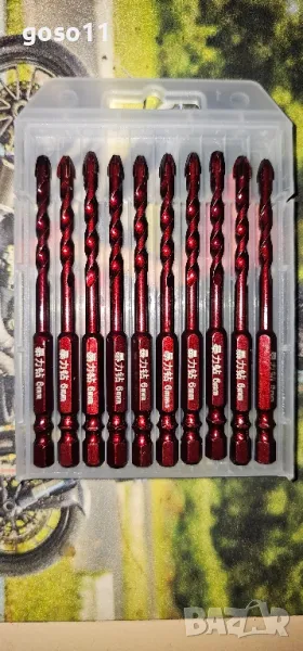 -- снимка 6, 7 : материал - карбидна стомана ; употреба - върху керамика, бетон, стъкло, дърво, пластмаса, тухла, гранитогрес ; комплект - 10бр. ;ф6 ; налични - 1 к-т ; цена - 22,10€./к-т