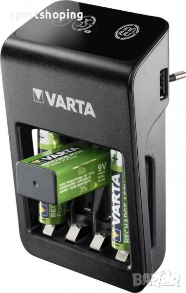 Новото зарядно устройство VARTA LCD Plug Charger Plus може да зарежда едновременно AA, AAA и 9V NiMH батерии а допълнителният USB изход може да зарежда едновременно външни устройства