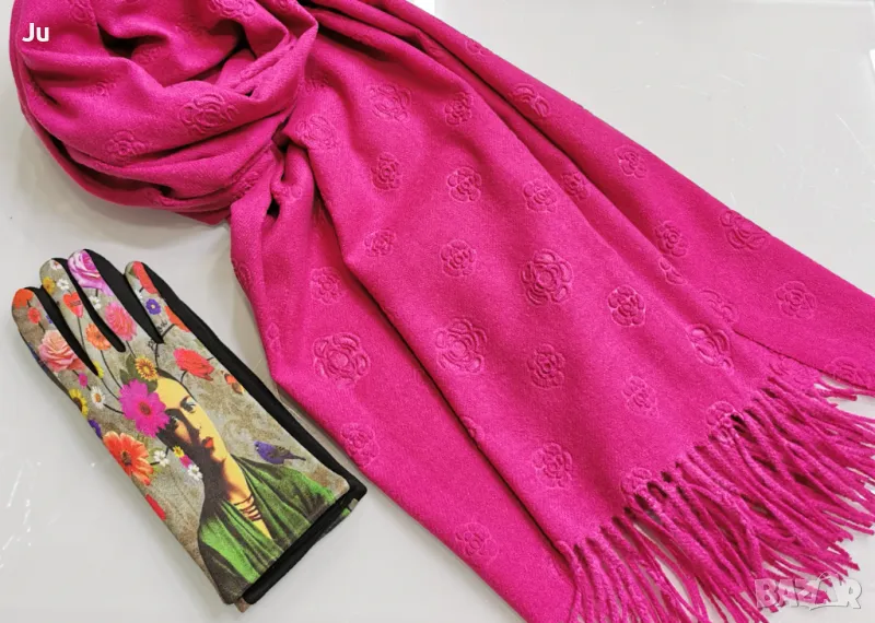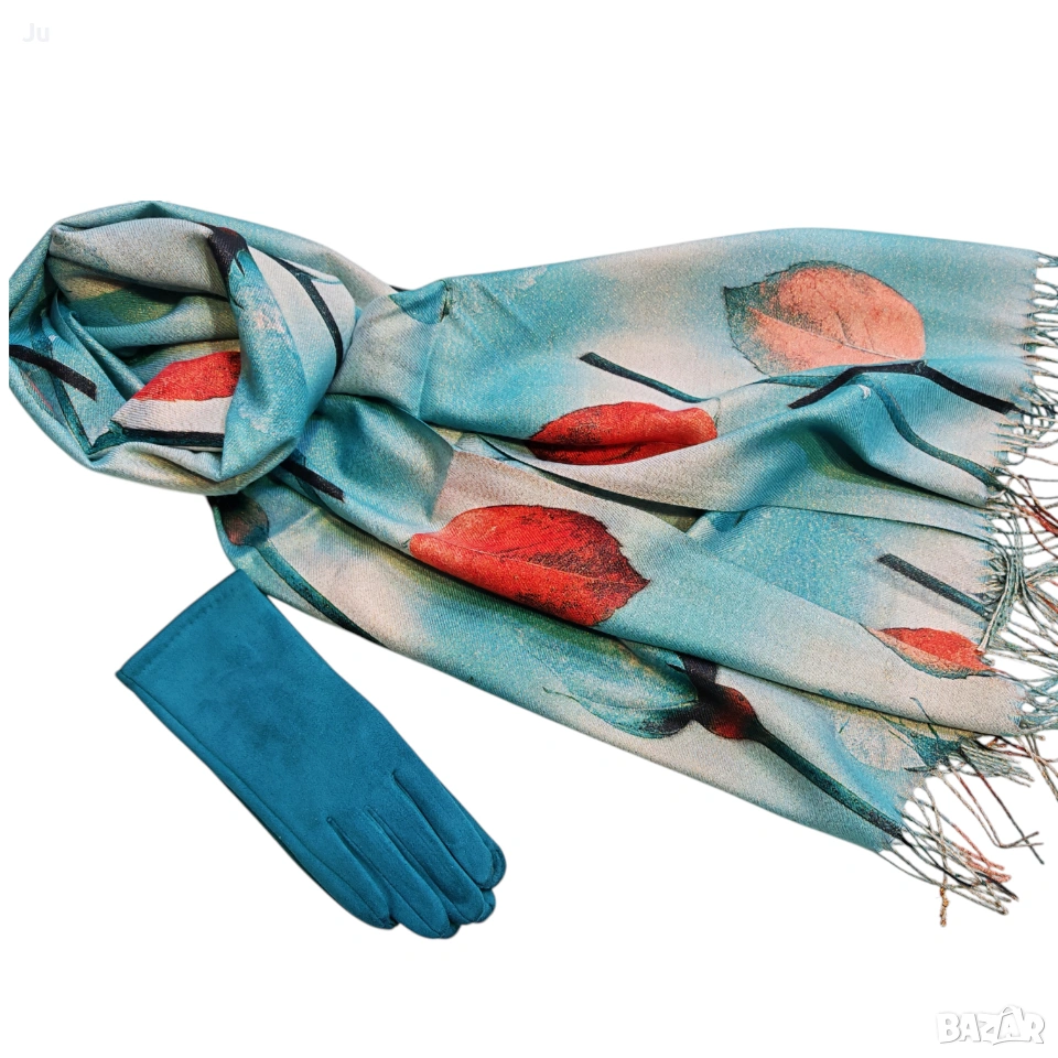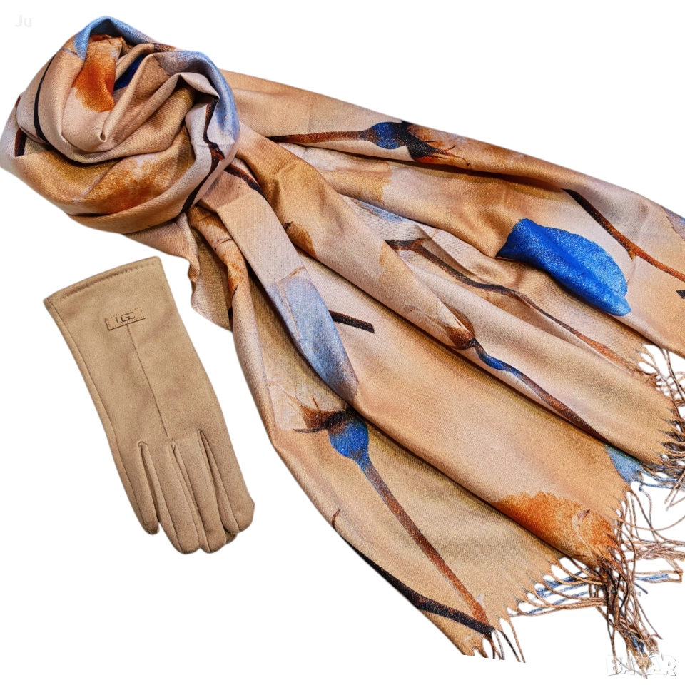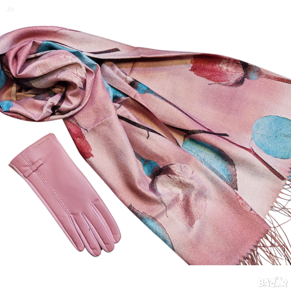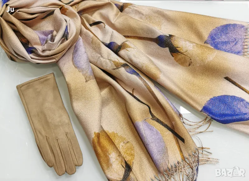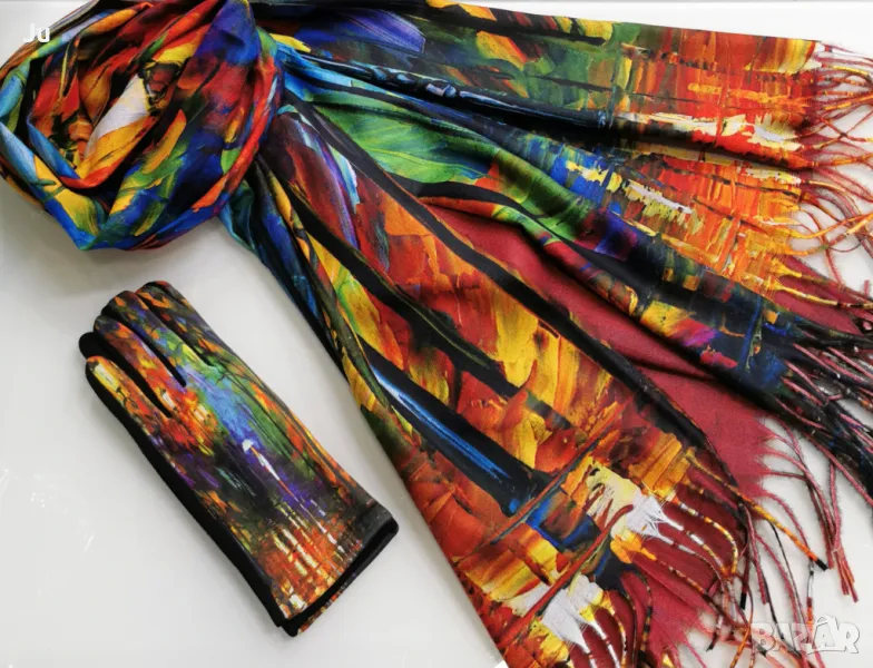 Комплект ефектен висококачествени кашмир шалове с ръкавици Арт серия картините