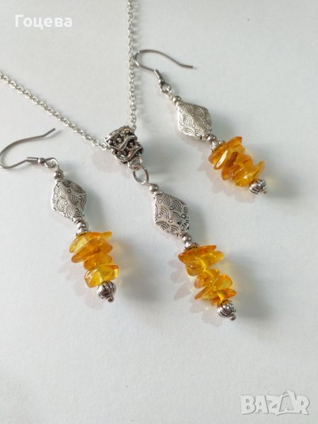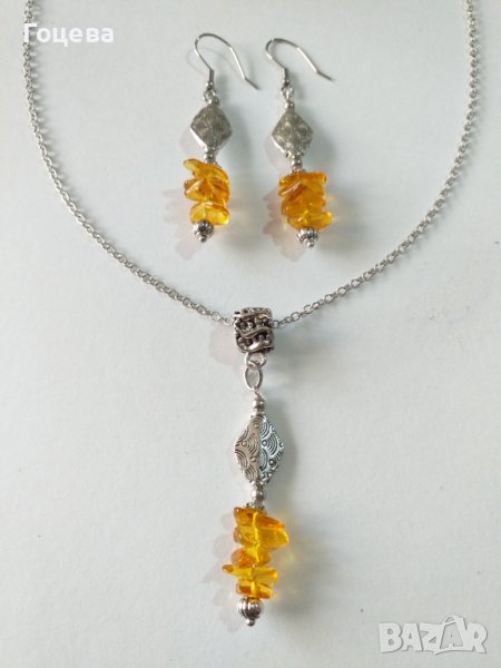 Прекрасният ни нов Кехлибарен комплект бижута обици и колие с естествен