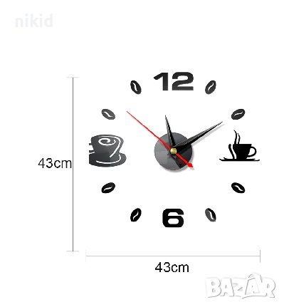 черен огледален чаши чаша зърна кафе стенен часовник атрактивен дизайн кухня кафене заведение стена → Обява 36709243