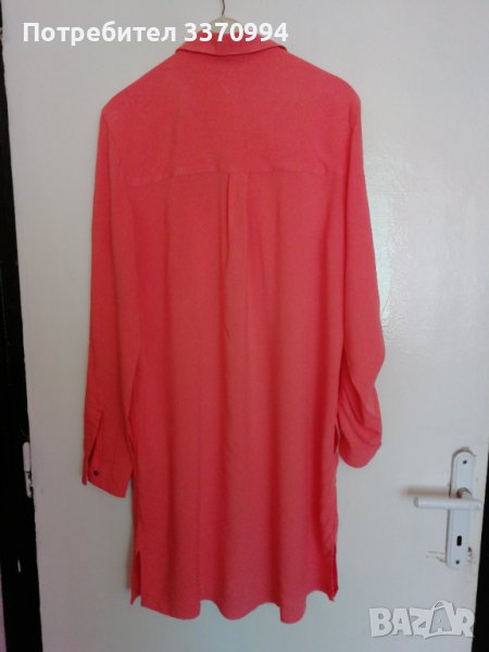 Прекрасна, много приятен, нежен цвят, с два странични джоба, ръкава се регулира. Много приятна материя за горещите летни дни. Дължината е 98 см., подмишници 50 см. Може и да се използва и за рокля.