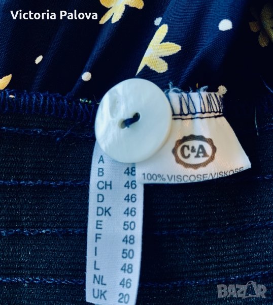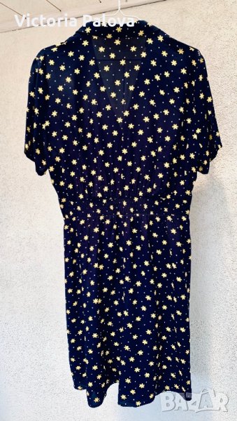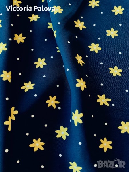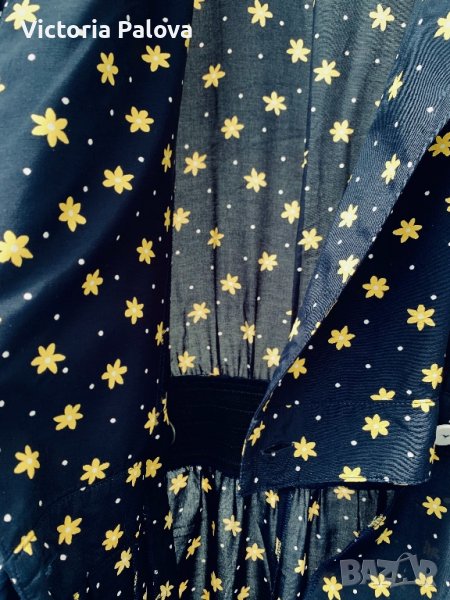 Прекрасен красив гащеризон, изглеждащ като рокличка - красив принт и уникална кройка, пасва на всички видове фигури. В кръста отзад е широк ластик, затова размерите са условни: рамене -48см, ГО- 60см, талия- 46см ( средно) , дължина -105см. Отпред са две перлени копчета (гащеризонът е с прехвърляне ,wrap) и два джоба.