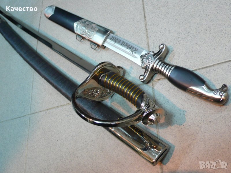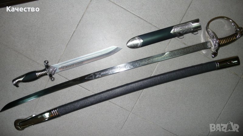 Продавам добра реплика на морска парадна сабя. Ножа от снимките вече е продаден. Цената е за сабята.