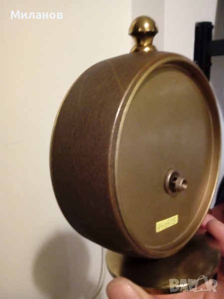 Стар немски настолен часовник Mauthe Electric,работи и звъни.Работи с една батерия R 14,включена е.Профилактиран и смазан,в отлично състояние.Диаметър-126 мм.№840508