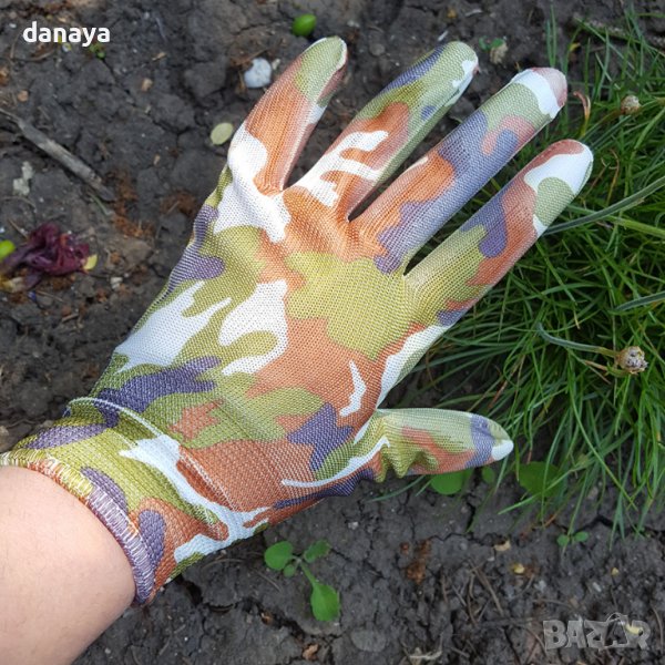 Удобни дамски работни ръкавици с цветен принт на цветя или камуфлажна шарка. Тези работни ръкавици прилягат плътно към ръцете и са идеални за работа в градината, почистване на дома, работа с препарати или инструменти. Универсалните градински ръкавици предпазват ръцете от леки наранявания и изцапване.
