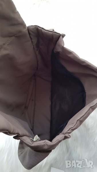 Отвътре е едон отделение с два мрежести джоба за поставяне на шишета или други аксесоари, от вън на капака също има два джоба удобни за поставяне на телефон ключове - неща от първа необходимост за лесно взимане без да се налага да се отваря чантата