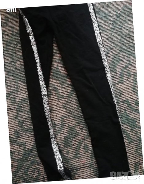 Прекрасен комплект с пайети. Горната част сива със звездички от пайети и в долната част също. Блузата изобщо не е е носена. Долното е в черно отстрани с пайети, без забележки. Памучни в идеално състояние