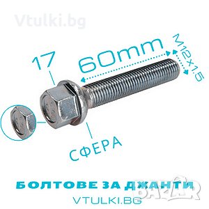 Болт за джанта M12x1.5 Сфера 60mm - Сив 3.00лв./бр. - Черен 3.00лв./бр.