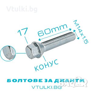 Болт за джанта M14x1.5 Конус 60mm - Сив 3.00лв./бр. - Черен 3.00лв./бр.