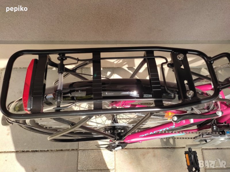НОВ алуминиев велосипед RAMBLER 28 цола,олекотена алуминиева рамка 28 цола с 24 скорости,фиксирани превключватели SHIMANO VIBRAKE 3 X 8,средно движение касета,алуминиеви курбели SHIMANO,преден отклонител SHIMANO ALTUS,заден отклонител SHIMANO ALTUS,задни венци SHIMANO HG-500,предна и задна алуминиеви главини ASSESS с автомати за бърз монтаж и демонтаж,пластмасови педали,алуминиево колче на седалката,удобна седалка на релси ASOLA,алуминиеви лапа и кормило,алуминиеви лостчета на спирачките,преден алуминиев амортисьор ZOOM заключващ се,регулиращ се,100мм.ход,алуминиев багажник,алуминиеви двойностенни усилени капли,никелирани спици,алуминиеви вибрейк спирачки,пластмасови калници,размер на рамката 46 х 56 см.тегло 16,9 кг.много елегантен велосипед.