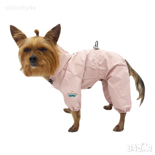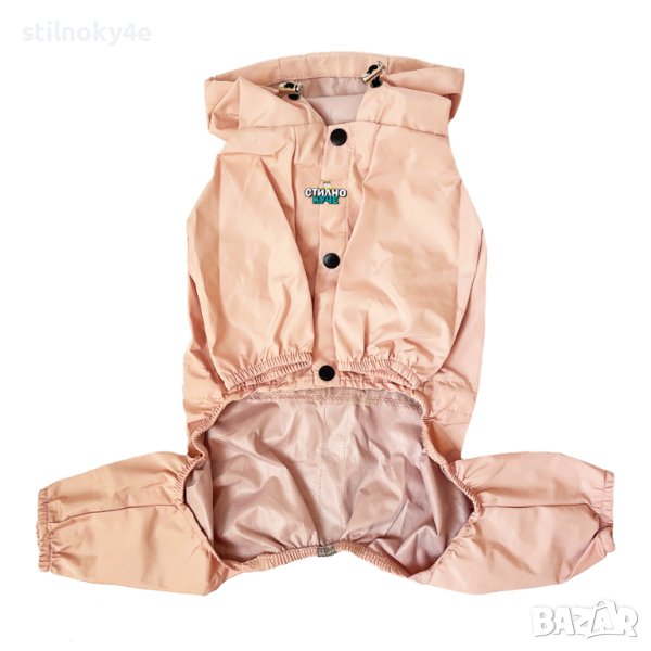 Дъждобран-гащеризон за куче в бледо розов/пудра цвят.