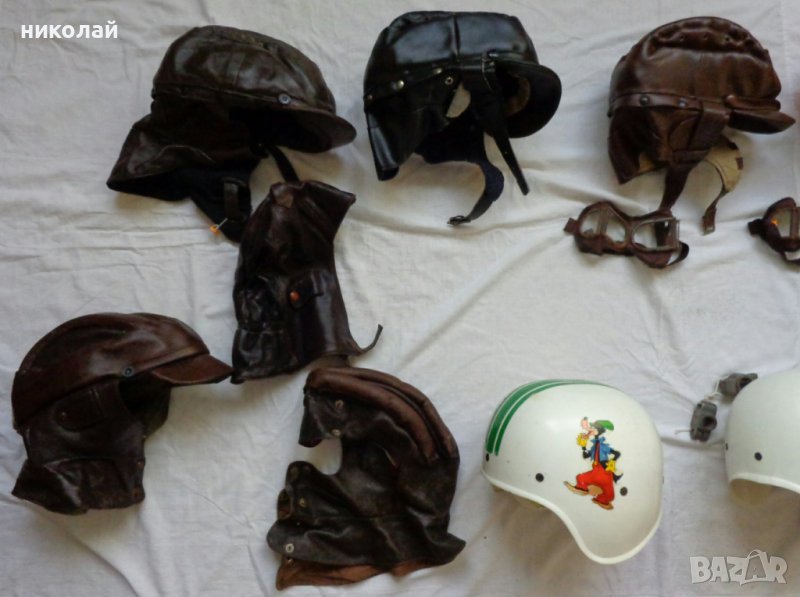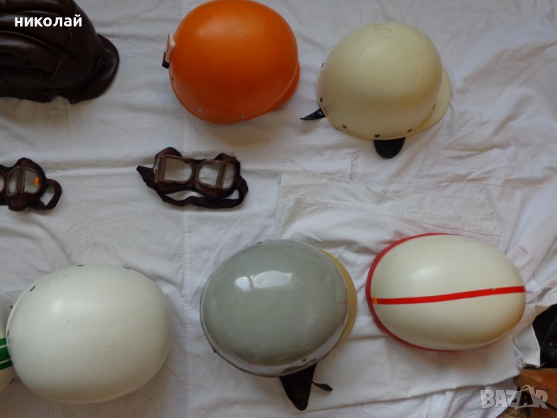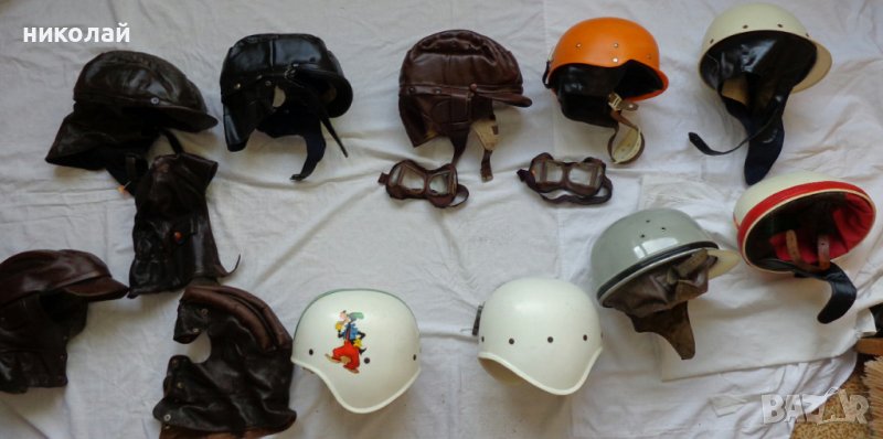 Продавам ретро мотоциклетни каски нови и употребявани. Материал Пластмасови, искуствена и естествена кожа.