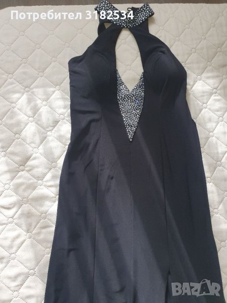 Дамска официална черна рокля. С цепка и отворен гръб. В много добро състояние, обличана е само веднъж за повод.