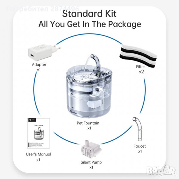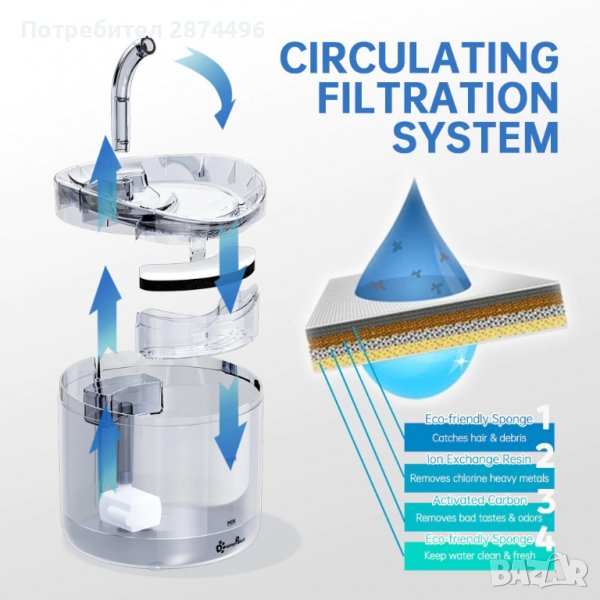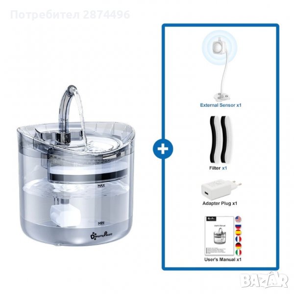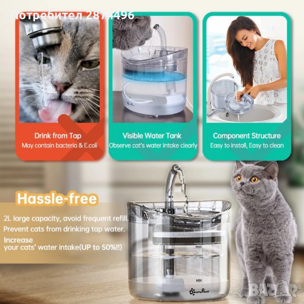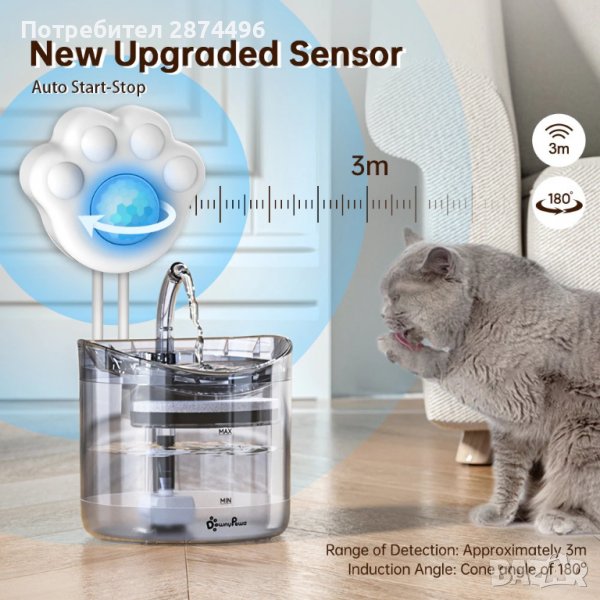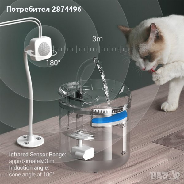 3643 Поилка за котки сус сензор за движение