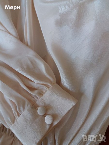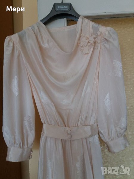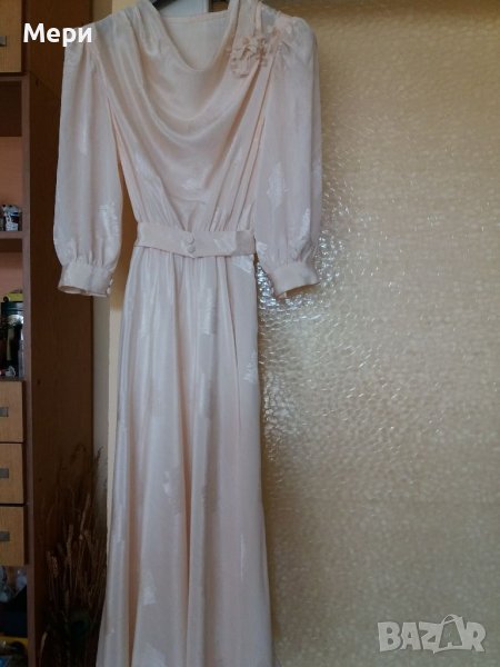 Продавам елегантна копринена рокля с хастар. Талия 66 см. Гръдна обиколка 86 см. Дължина 120 см. Към роклята има допълнително и поличка /може и без нея/. Роклята е обличана само веднъж за няколко часа. За София може лично предаване.