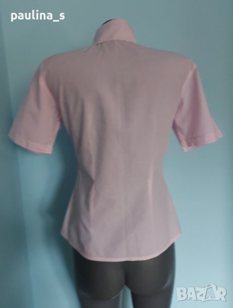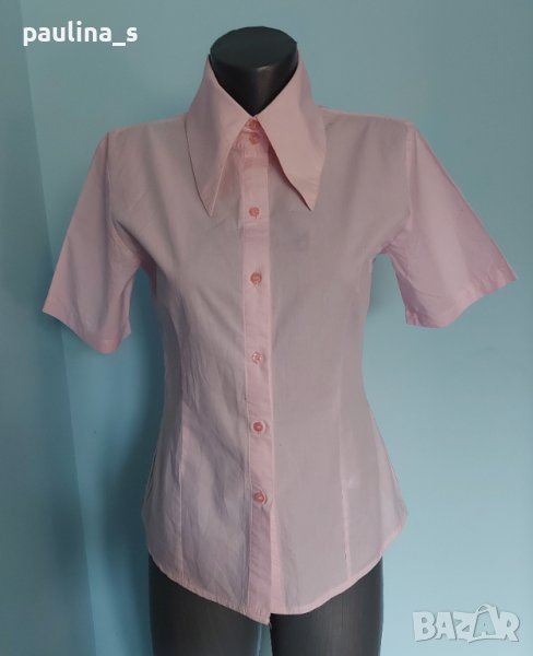 1️⃣. Много сладурска розова риза с къс ръкав и виконт ска яка с високо столче и двойно закопчаване. Материята е органичен памук, без еластичност. Без дефекти, като нова.