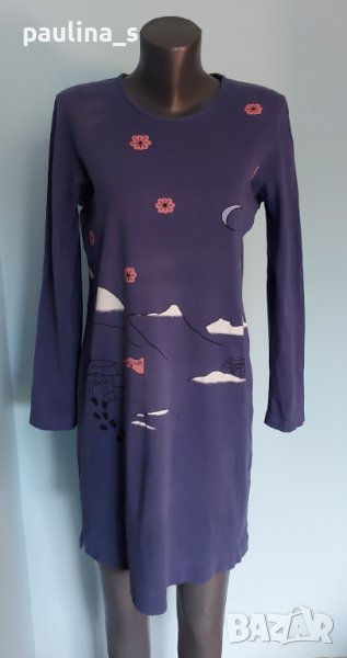 Triumph". Цената е крайна, без пазарлъци 22,5 евро. Сладурска памучна нощница от плътно трико с щампи на облачен фон, точно като за сън и сънища. Цветът е най-близо до реалния на снимката с етикета. Трикото е плътно и еластично, хипоалергично и покрива няколко размера, посочени са, без дефекти и етикет, една бройка, не е нова.