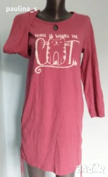 2️⃣. Колаж / L / 2XL - "Gina Benotti". Цената е крайна, без пазарлъци 10 евро. Домът е там, където си по пижама. Розова нощница тип туника от чист памук. В страничните тегели има шнур за регулиране дължината. Не е нова, но е без дефекти.