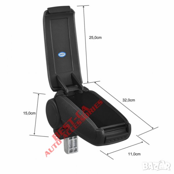 Монтира се в отделението за съхранение зад ръчната спирачка.