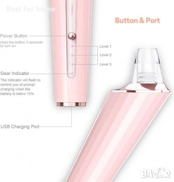 - Екстракторът за акне комедони използва усъвършенствана технология за вакуумна абсорбция, специално проектирана за различни типове кожа. Ниво 1 е подходящо за чувствителна кожа и суха кожа, ниво 2 е подходящо за нормална кожа, а ниво 3 е подходящо за комбинирана и мазна кожа , можете да изберете засмукване, за да получите по-удобен ефект на почистване.