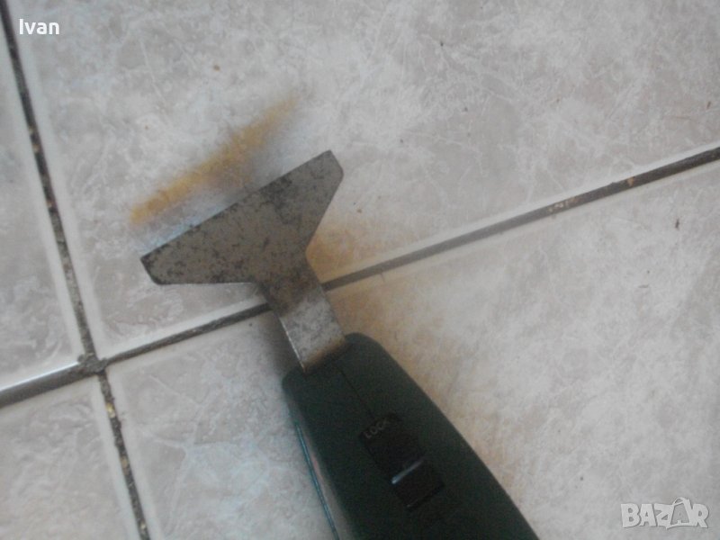 ОПИСАНИЕ ШВЕЙЦАРСКО ОРИГАНАЛНО БОШ ДЛЕТО-ШАБЪР С ПРИСТАВКА ОРИГИНАЛНА БОШ - 129 ЛВ. СНЕТО ОТ ПРОДАЖБА. Почти ново, силно и мощно оригинално швейцарско електрическо длето-шабър, оригинален 150 ватов модел на Бош. Марка и модел на машината - Bosch PSE 150. Произовдство - оригинално Швейцария - Switzerland - упоменато на маркировките. Машината е като нова ,с много запазен външен вид и отлично техн.състояние. Много добри ротационни движение и трептения. Мощност на мотора - 150 вата, защита 0,7 ампера. Горен пусков ключ с приплъзване. Поставен оригинален аксесоар на машината - широк режещ нож с наклон , оригинален на марката, с фабричното лого на Бош.
