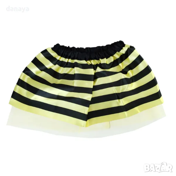 – пола на черни и жълти линии, със слой тюл, на ластик в талията.