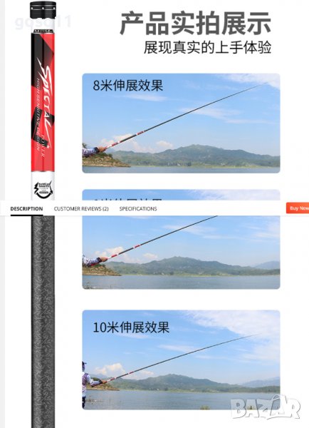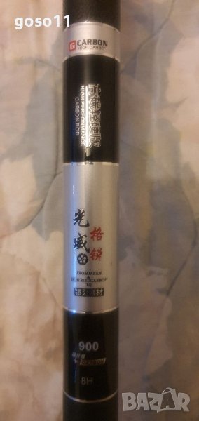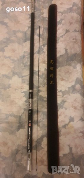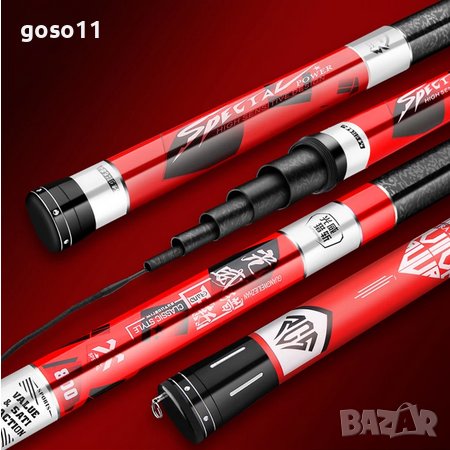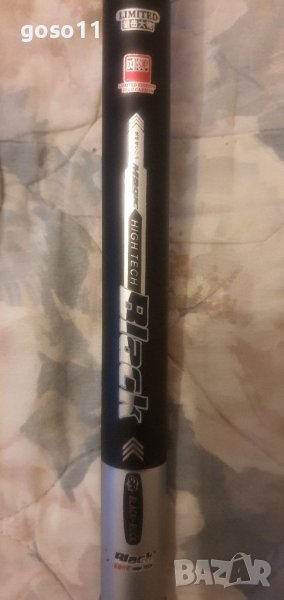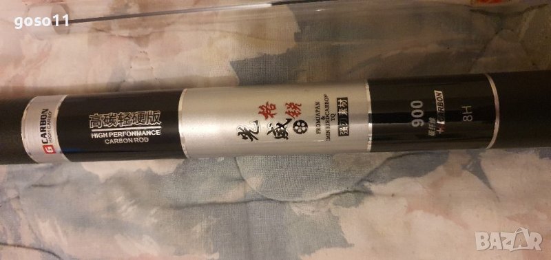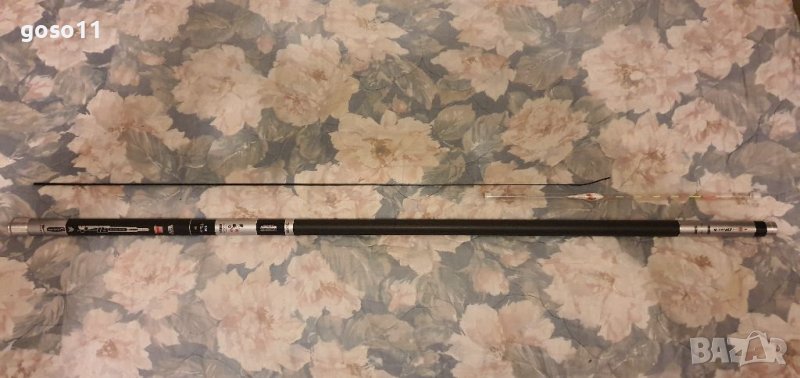 - 9м. ; реална дължина - 8.90м ; тегло - 490гр. ; диаметър в основата - 27мм. ; диаметър връх - 1.2мм. ; събрано състояние - 120см. ; бонус - един връх 1.6мм. и плувка 2.2гр. ; секции - 9бр. ; максимално натоварване - 8кг. ; налични 2бр. ; цена - 105.00€./бр.
