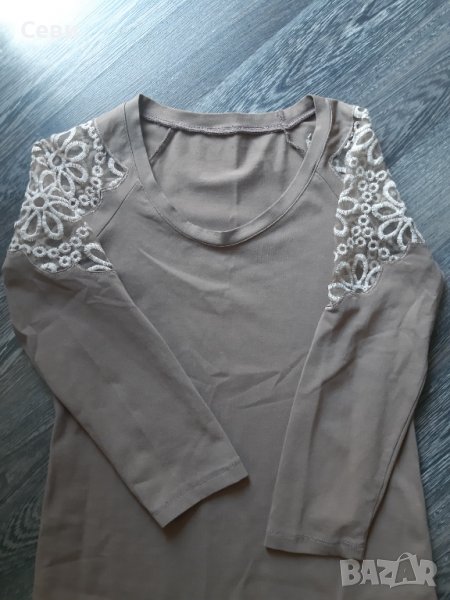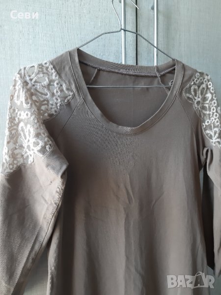 Рокля от плътвно трико с дантела на ръкава. Дължина 94см, ГО 40см, талия 38см, ханш 44см.Силно еластична е ,става и за бременни.