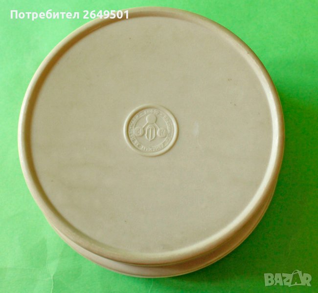 Красива Соц. бакелитова кутия с партийния дом 1960те, Маркирана " Прмишлен комбинат за пластмаси София" Размер доста голям -диаметър 13.5 см. Дълбока 6.8 см. Перфектна. Минт.