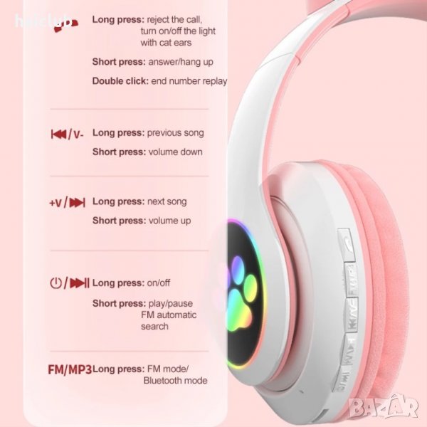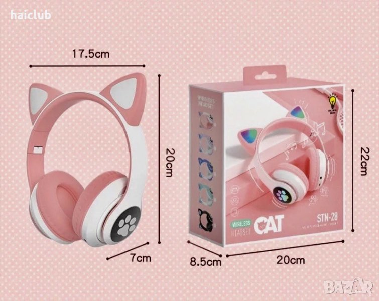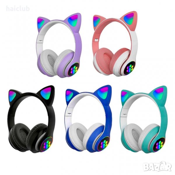 Безжични слушалки с котешки уши със Led светлини/Слушалки коте/ → Обява 36754960