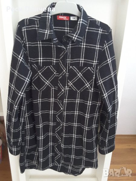 Продавам туника тип риза за момиче -черно/бели квадрати и два джоба.Много запазена ,подходяща за есенно-зимен сезон.
