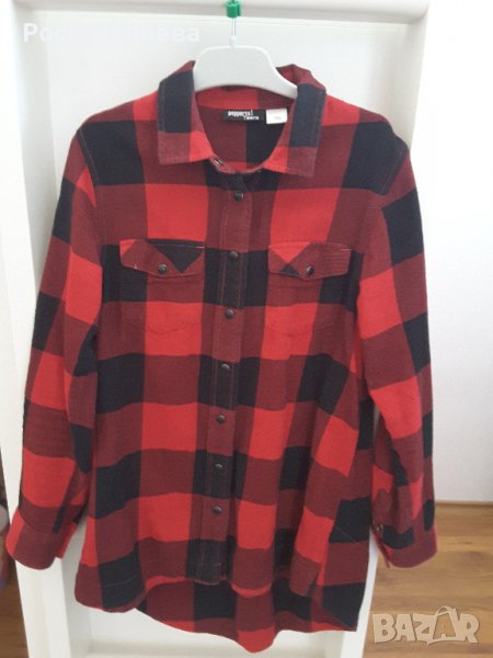Продавам туника тип риза за момиче -червено/черни квадрати и два джоба.Много запазена ,подходяща за есенно-зимен сезон.