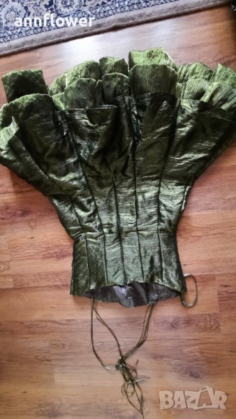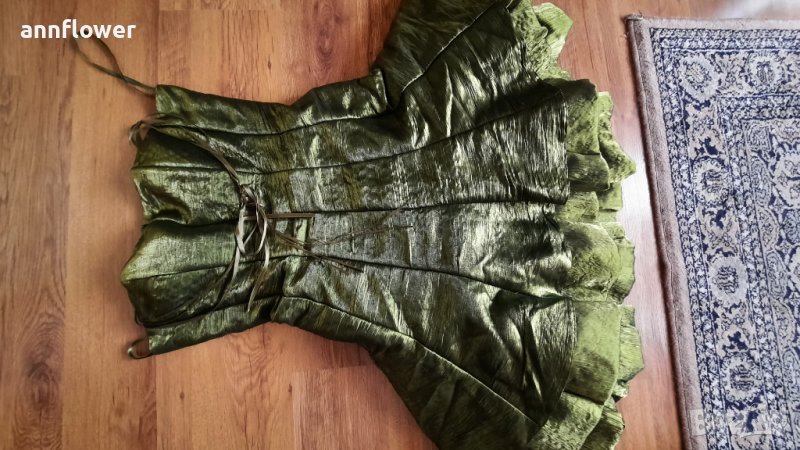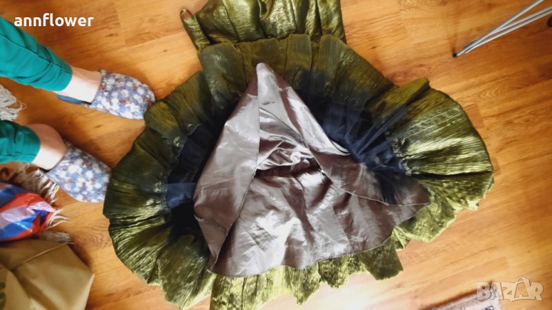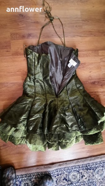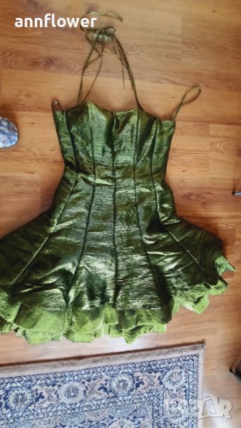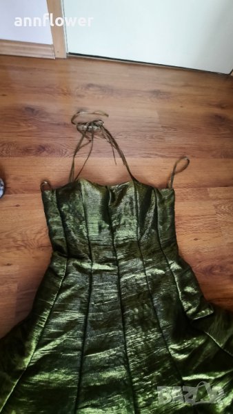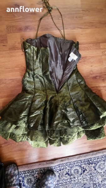 Обличана веднъж по повод. Цвят зелен Размер S. Дължина 74см, талия от 70см до 75см за бюст от 70В до 80С.