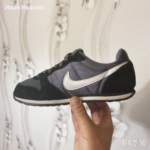 NIKE Gennico са класически маратонки за бягане с изчистен, ретро вид. Горната част е изработена от дишаща найлонова материя с велурени покрития. Сигурната връзка и подсилената пета осигуряват сигурно прилягане. Клиновата подметка от специална гума с амортисьори е снабдена с шарка на протектора под формата на пчелна пита, осигуряваща оптимално сцепление с повърхността.