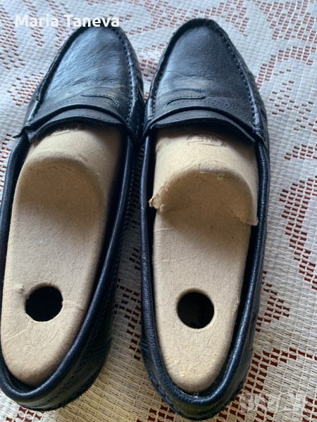 Дамски мокасини от естествена кожа, цвят-тъмно син, почти черен. Размерът е 36.5 по европейската номерация, дължината на стелката( вътре) е 24 см. Обувките са нови.